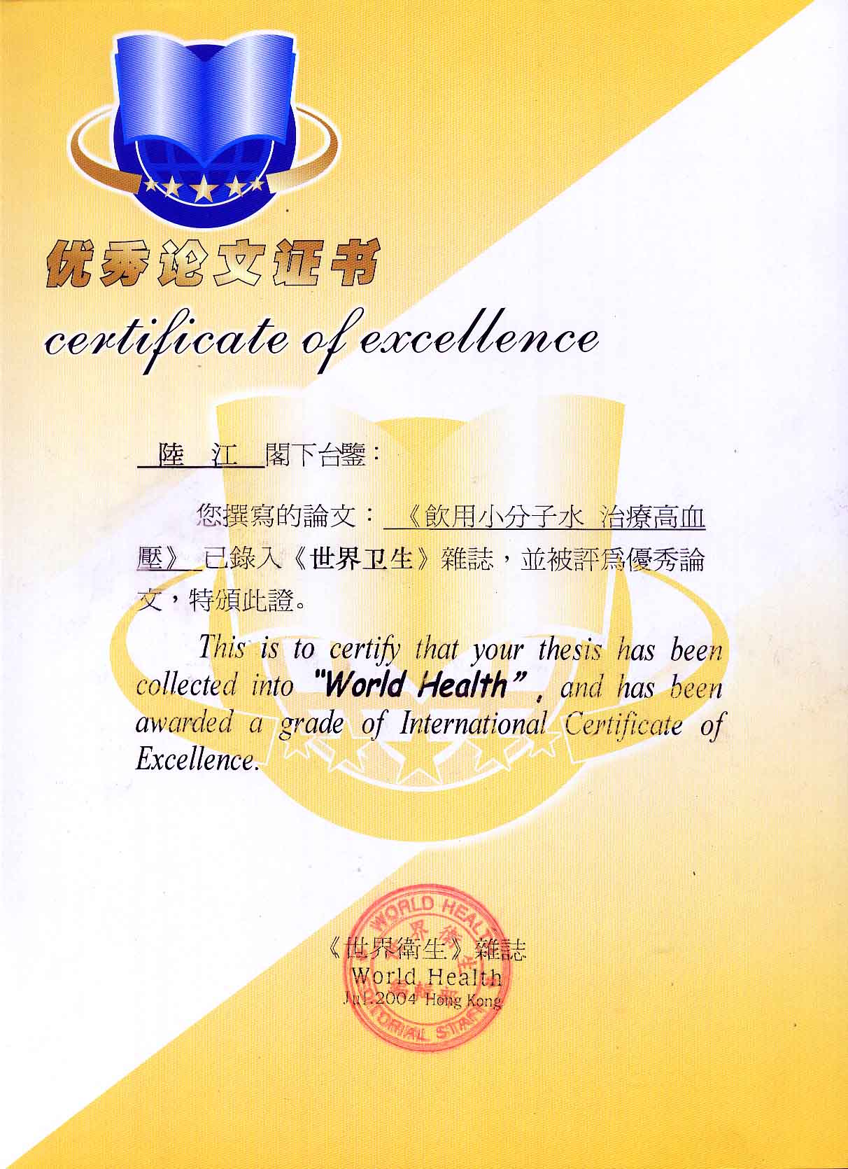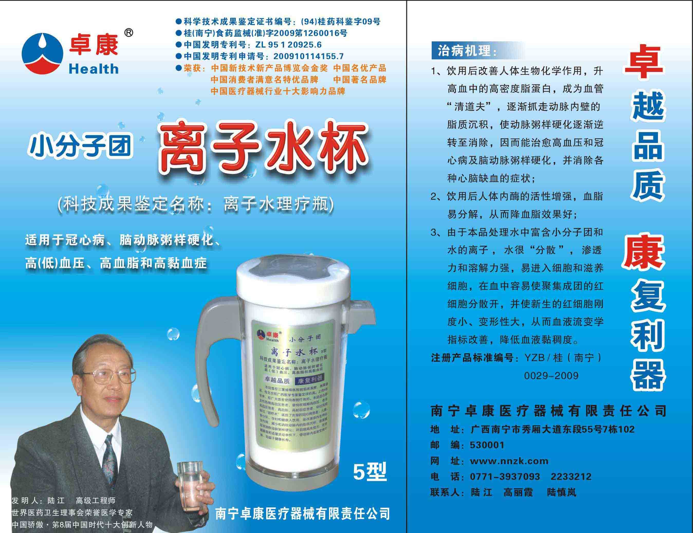-----我是從事建筑的高工,本來沒有資格去攻克醫(yī)學(xué)難題,卻為了自身健康才扣響醫(yī)學(xué)的大門。由于我1990年患高血壓,因怕中風(fēng)才研究發(fā)明了離子水瓶,我把水處理成微小分子團(tuán)水,飲用后治愈了高血壓。便于1993年底送到三家省級醫(yī)院做臨床試用4個(gè)月。經(jīng)北京和廣西醫(yī)學(xué)專家鑒定:"降脂降壓效果好"," 能擴(kuò)大心腦動脈流量,改善心腦電圖以及微循環(huán)","對治療心腦動脈粥樣硬化、高血壓、高血脂有良好的醫(yī)療保健作用。""產(chǎn)品的技術(shù)性能和療效達(dá)到了同類產(chǎn)品的國內(nèi)領(lǐng)先水平,經(jīng)廣西醫(yī)學(xué)科學(xué)情報(bào)研究所檢索,未見國外有類似報(bào)道。"中國醫(yī)學(xué)科學(xué)院張正國教授從美國國立醫(yī)學(xué)圖書館數(shù)據(jù)庫存Medline檢索英俄文資料,均未見類似報(bào)告。2000年上市后,我為了對消費(fèi)者負(fù)責(zé)而繼續(xù)觀察研究,一直通過《信譽(yù)卡》和《質(zhì)量跟蹤調(diào)查書》向患者承諾療效,請用戶使用6個(gè)月后反饋效果。和脂壓患者飲用2至5個(gè)月內(nèi),消除癥狀,停服藥物,血壓正常;冠心病患者飲用3~5個(gè)月逐漸減輕至消除心絞痛、房顫等癥狀,不再服藥,飲用1年左右心電圖正常,經(jīng)冠脈造影掃描無明顯狹窄,表明冠心病痊愈。大量患者還反映許多衰弱器官被修復(fù),讓前列腺增生、慢性咽喉炎、慢性氣管炎、支氣管炎、慢性胃炎、腸炎和膽囊炎等不藥而愈;2型糖尿病患者是因?yàn)橐葝u衰弱致病,飲用該水半年至一年,逐漸減藥至停藥,血糖尿糖正常,真正治愈2型糖尿病。中風(fēng)后遺癥患者飲用六七個(gè)月,可逐漸減輕至消除肢體和語言障礙,表明飲用該水能讓壽命很長的神經(jīng)元細(xì)胞逐漸修復(fù),奇跡般地恢復(fù)肢體和語言功能。飲用后還使胸腺和脾臟兩個(gè)重要的免疫器官被修復(fù)和增強(qiáng),產(chǎn)生免疫細(xì)胞多,提高了免疫力,使人不生病或少生病。自此, 飲用微小分子團(tuán)水創(chuàng)造了攻克冠心病、高(低)血壓和糖尿病三大醫(yī)學(xué)難題的奇跡。人們對此感到不可思議,但實(shí)踐是檢驗(yàn)真理的唯一標(biāo)準(zhǔn)。